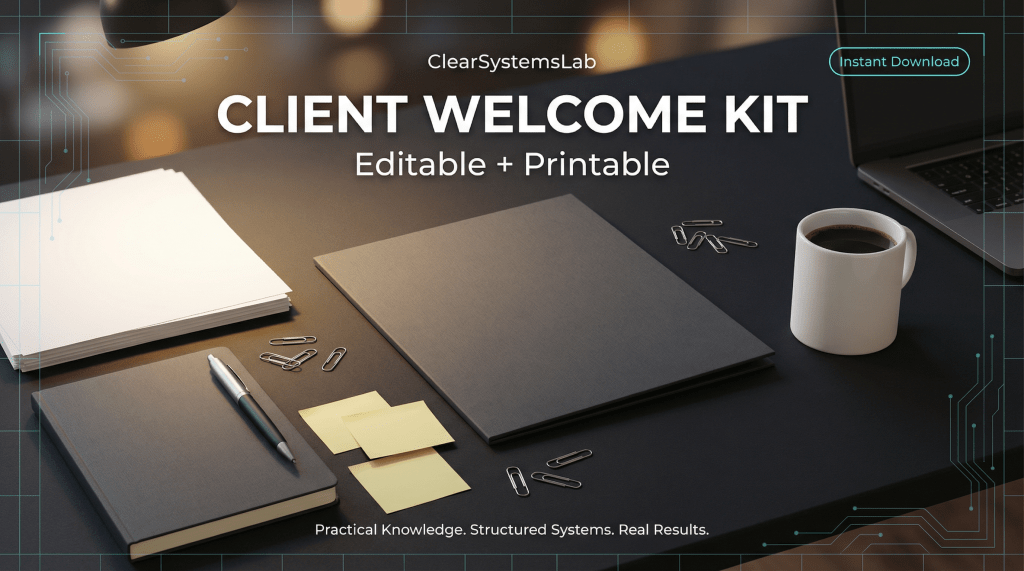This Client Welcome Kit is a systems-first onboarding framework for 1:1 client engagements.