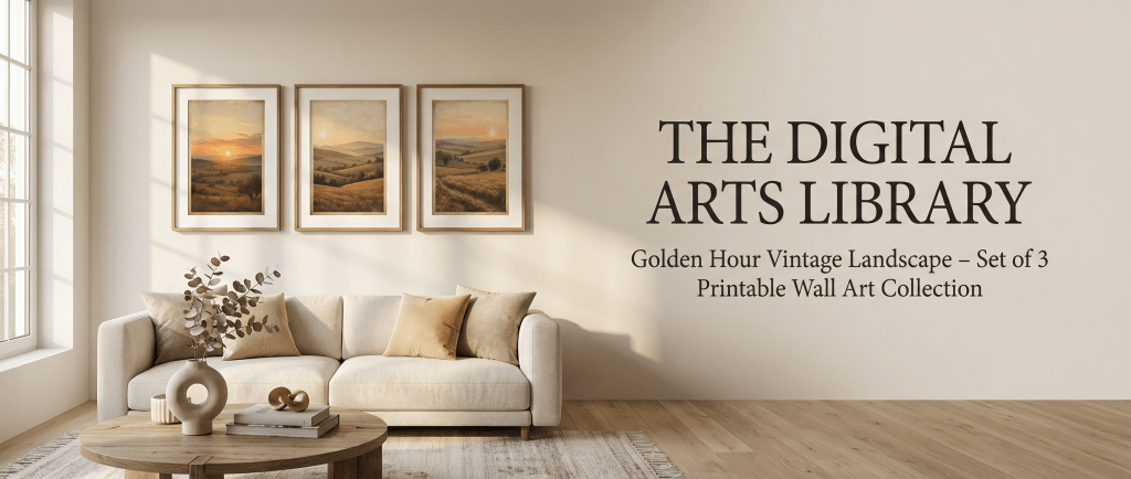 Bring warmth, softness, and timeless charm into your space with this curated set of three vintage-inspired landscape artworks.