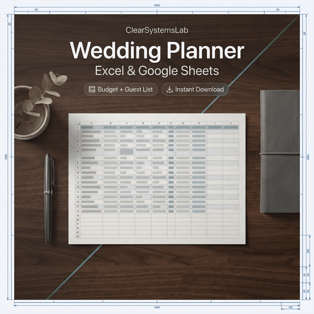 An all-in-one wedding planner spreadsheet for Excel and Google Sheets—track budget, vendors, guests, seating, checklist, and timeline in one clean dashboard (instant download).