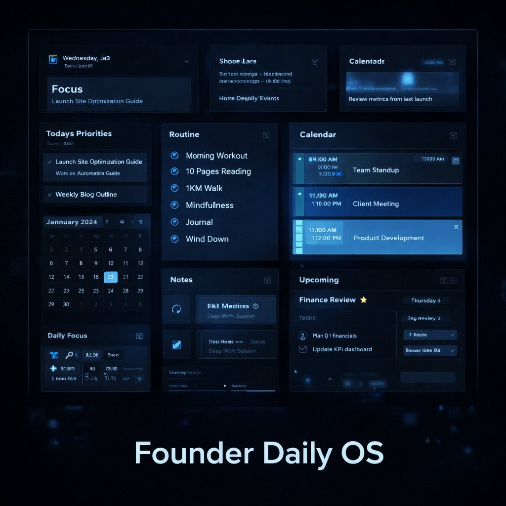 A daily execution framework for clarity, priorities, and steady momentum.